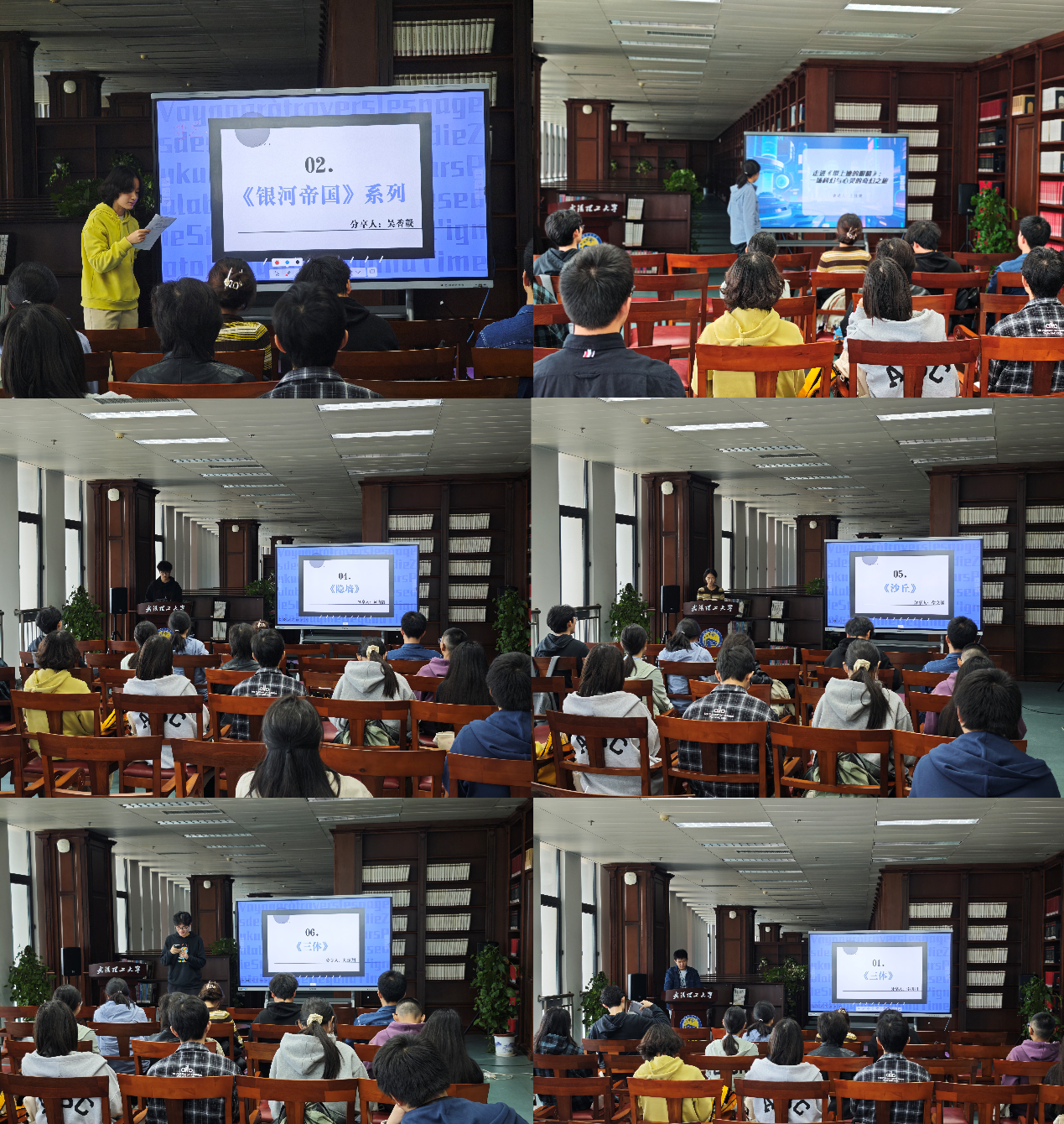 本次活动以“科幻想象”为纽带,搭建起文理交融的深度阅读平台。学院与图书馆携手,从想象逻辑、人文内涵、现实关联三个角度切入作品解读,既保留了科幻作品的奇幻张力,又凸显了其背后的理性思考与人文温度,精准契合学生思维特点,让阅读成为激活想象、连接知识与生活的桥梁。