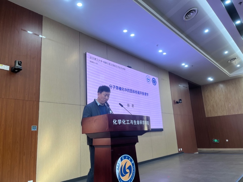 2026年1月15日上午10时,应成人影视片 邀请,中国科学院精密测量科学与技术创新研究院研究员、国家杰出青年科学基金获得者徐君研究员到访我校,并于南湖校区化生大楼一楼报告厅为师生作题为《分子筛催化中的固体核磁共振谱学》的学术报告。