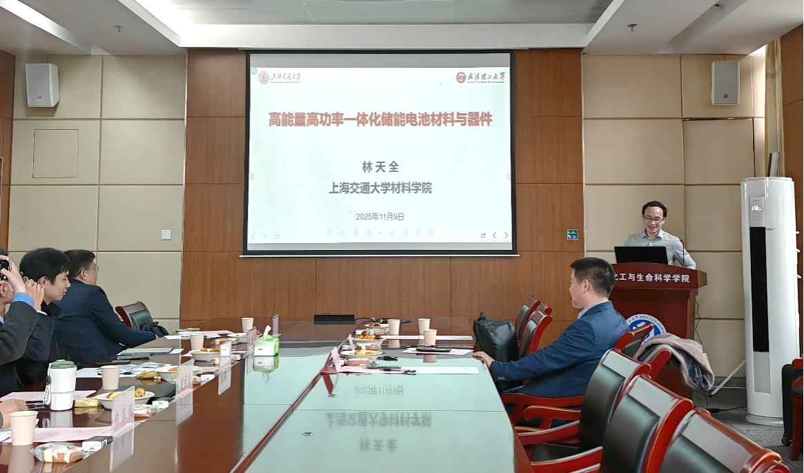 2025年11月9日上午9时,应成人影视片 电能源化学与先进储能材料团队刘金平教授邀请,上海交通大学材料科学与工程学院副院长、国家优青、博士生导师林天全教授到访,并于南湖校区化生大楼S217会议室为师生带来了一场题为《高能量高功率一体化储能材料与器件》的前沿学术报告。报告会现场座无虚席,气氛热烈。
