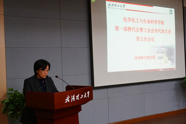 王利荣书记作学院工会工作报告,报告从加强学院制度建设,强化民主管理;加强文化建设,营造良好氛围;加强师德师风建设,促进青年教师成长;提升服务意识,维护教职工权益等方面全面总结了2018年学院工会工作,并对学院工会会费使用情况和2019年工会主要工作设想进行了报告。