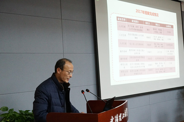 耿英刚副书记就上次会议提案完成情况、本次会议提案征集工作及学院院训方案形成情况作说明。