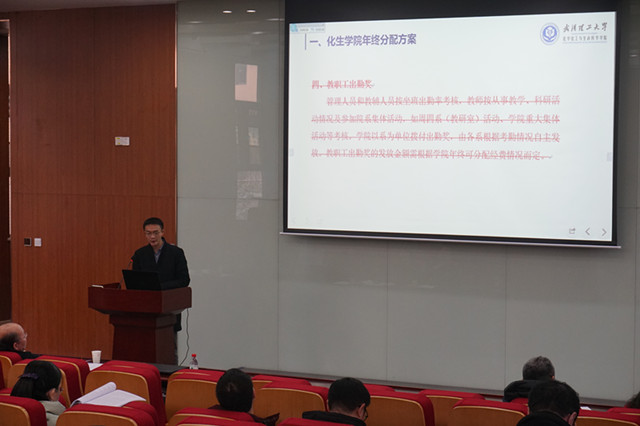 史彬副院长作学院公共实验平台管理办法制定和学院分配方案、绩效考核以及奖励办法修改说明;