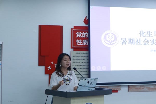 为进一步做好2023年暑期社会实践工作,有效引导广大青年学生上好与现实相结合的“大思政课”,在社会课堂中受教育、长才干、作贡献,学院团委社会实践部于6月19日晚19:00在化生大楼s308教室开展暑期社会实践动员会,介绍实践活动相关事项,引导同学们更好地开展社会实践活动。团委书记李小睿老师、20级辅导员段炼老师出席活动。