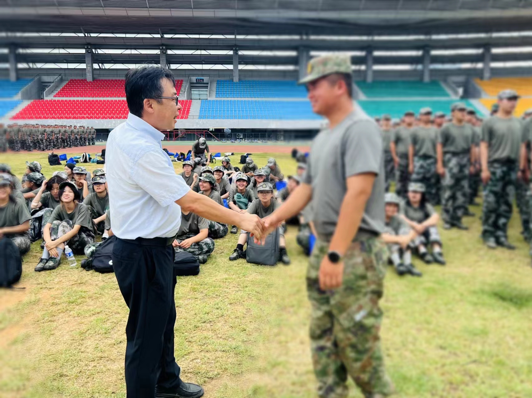2024年9月17日,正值中秋佳节,学院主要领导一行来到军训现场,亲切慰问了正在训练中的教官及成人影视片 (马赛学院)2024级新生,与他们共迎中秋,为他们送上节日祝福和慰问关怀。学校军训指挥协调组领导、所在团连长一同参加。
